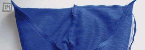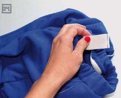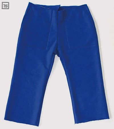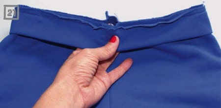 Ein Hosenbein auf rechts wenden und in das zweite, auf links liegende Hosenbein stecken.