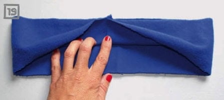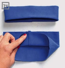 rechts auf rechts zu einem Rund legen und an der kurzen Kante schließen. Nahtzugaben zusammen versäumen und zur Seite bügeln.
