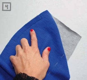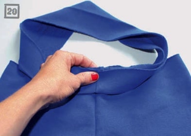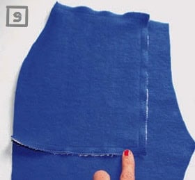 Schrittnaht schließen und Nahtzu- gaben zusammen versäubern. Nahtzugaben zur Seite bügeln.