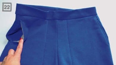 Innere Beinnaht schließen. Nahtzugaben zusammen versäubern und in die Hinterhose bügeln. Das andere Bein wie in Schritt 11 und 12 fertigstellen.