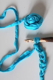 Material: Stoffreste (hier: gemusterte Baumwolle und Feincord aus alter Hose)