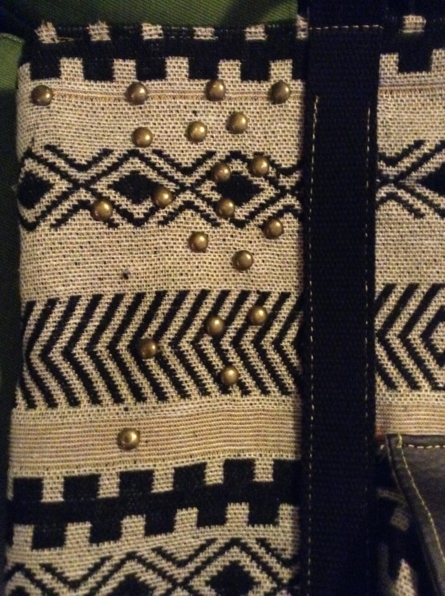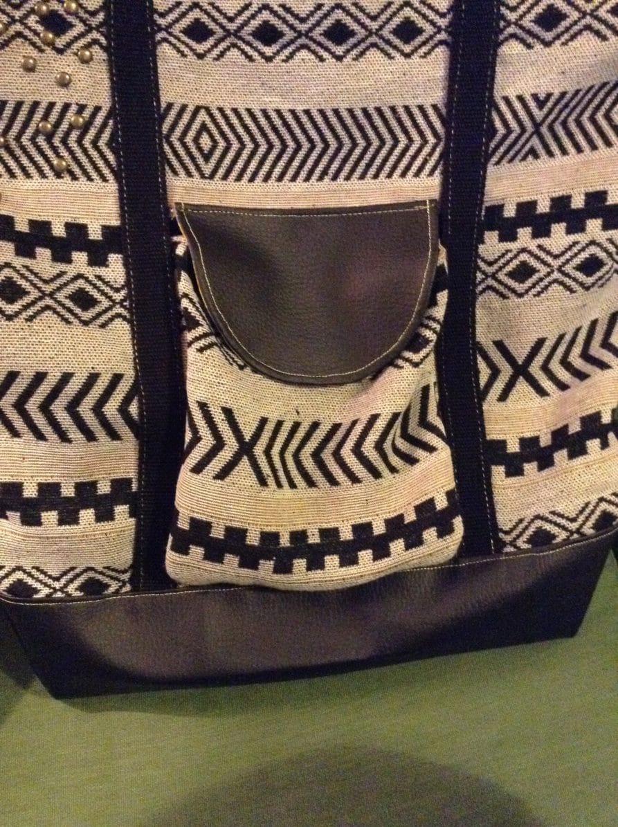 Für das Außenteil habe ich schwarz-weißen Gobelinstoff und schwarzes Kunstleder verwendet.