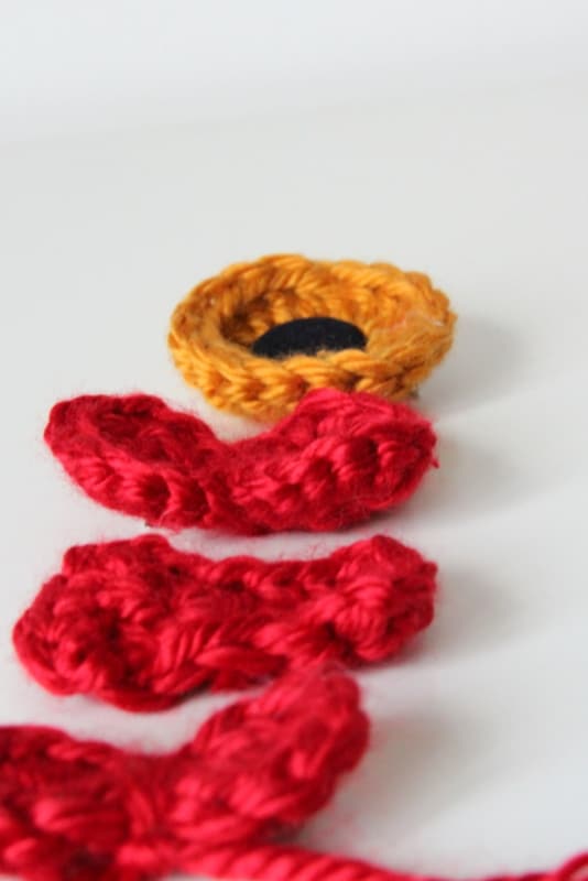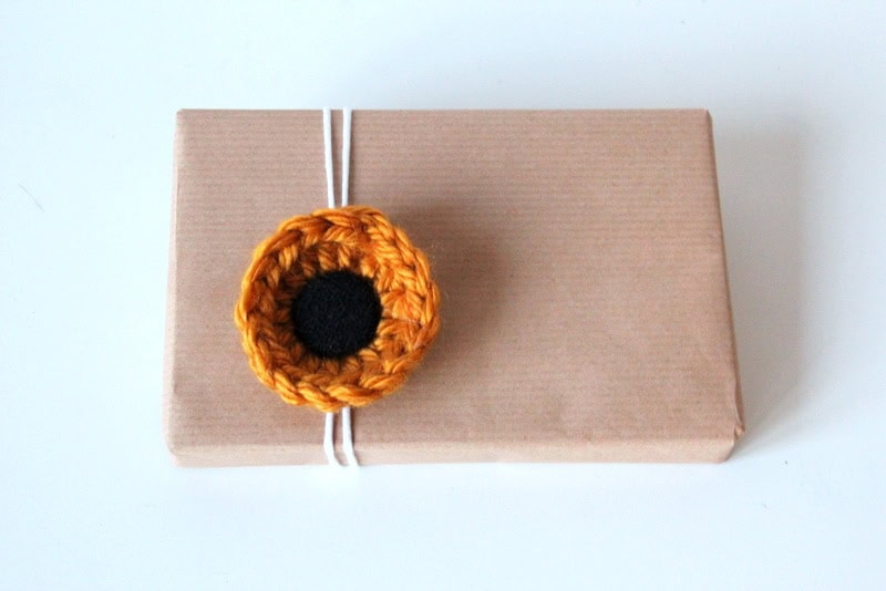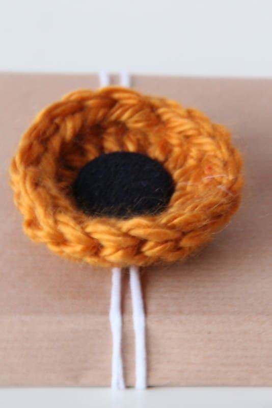 Was wollt ihr auf euren Clip machen? Wollt ihr eine schöne Schleife aus Stoff machen? Oder eine Häkelblume? Ein Stück Band aufnähen? Ich habe mich entschieden, einen einfachen Häkelkreis aus dicker Wolle zu machen - mit einem grossen Knopf in der Mitte. Vielleicht macht ihr von allem eines - schliesslich habt ihr ja bestimmt mehrere Geschenke zu verpacken.