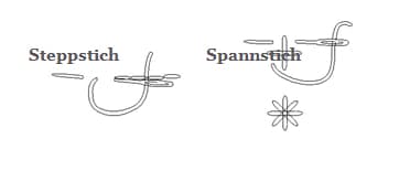 Kreise mit Bastelkleber fixieren und im Steppstich (Fb. 161) aufeinander sticken. Auf den kleinen Kreis die Stiele der