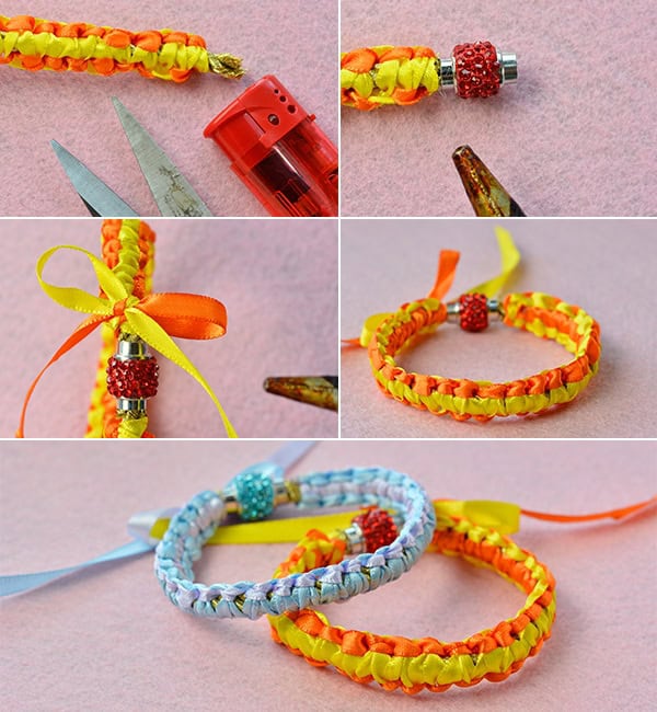3) Mit der gleichen Methode verwendet, um blaues Band Armband machen