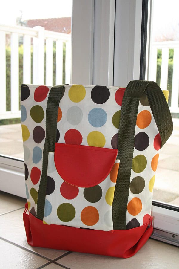 So, geschafft: Mein Pattydoo-Shopper aus der letzten Handmadekultur-Ausgabe ist endlich fertig und ich kann ihn hier stolz präsentieren. Ich habe mich für knallrotes Kunstleder und einen festen Baumwollstoff mit dicken, bunten Punkten entschieden, weil das einfach Laune macht. Weg mit der trüben Nasses-Wetter-Winter-Stimmung und her mit fröhlichen Gesichtern und Farben!
