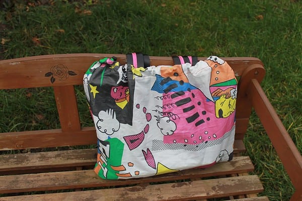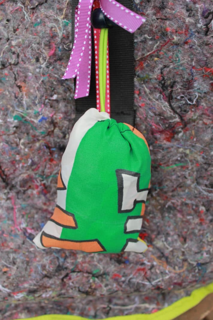 Und als Zusatzidee habe ich noch eine Regenhülle gemacht aus einem alten sehr farbenfrohen