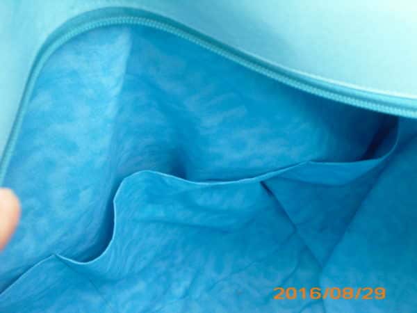 Da ich nicht so groß bin, wurde das Schnittmuster auf 80 % verkleinert. Die Tasche ist damit immer noch riesig – ca 45 cm Durchmesser.