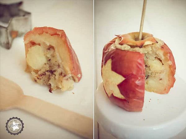 dicken Rand übrig lassen. Den ausgeschabten Apfel in