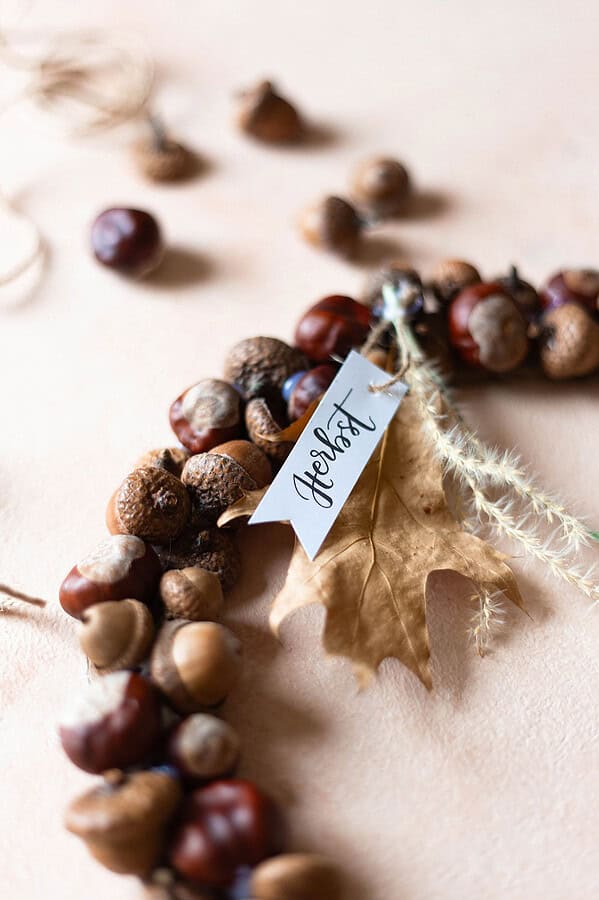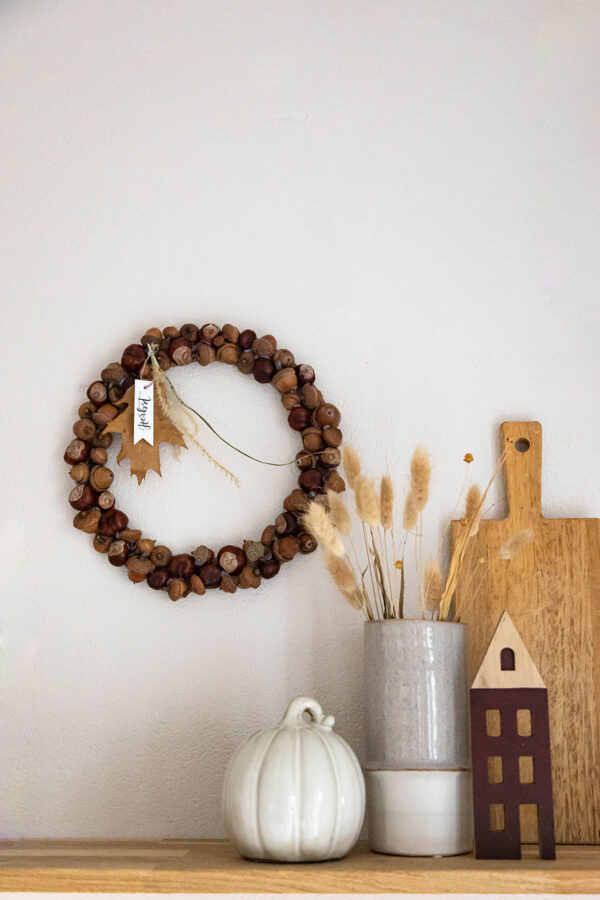 Dieses Herbstkranz aus Kastanien bringt sofort Wärme und Gemütlichkeit ins Zuhause: https://svenniliebt.de/kastanien-basteln-einfacher-herbstkranz/