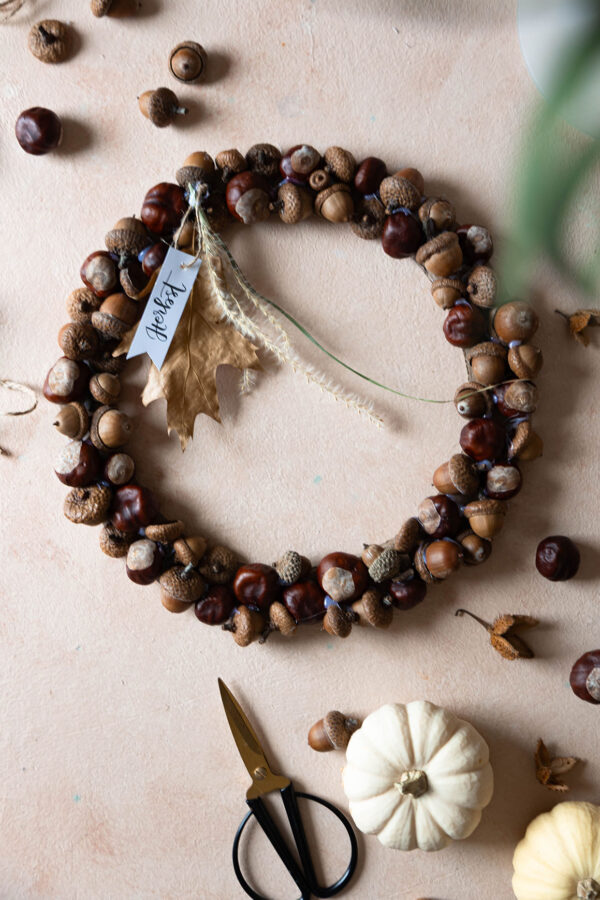 Mit Kastanien basteln: Bastelidee für einen einfachen Herbstkranz