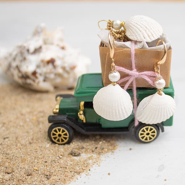 Habt ihr den Mermaidcore-Trend verfolgt, der im letzten Jahr aufkam? Er war etwa bei der Sommermode von Luxusmarken wie Versace oder Burberry zu sehen, bei Einrichtung, Deko und natürlich auch hier auf Instagram. Es gibt sogar eine Schwimmsportart namens Mermaiding / Meerjungfrauenschwimmen, bei der man lernt, mit bunten Fischschwänzen zu schwimmen (kein Scherz!). Ich jedenfalls war auf der Suche nach etwas Alltagstauglicherem als einem Fischschwanz – habe mir deshalb einfach eigenen Schmuck mit Muscheln aus dem letzten Sommerurlaub designt.
