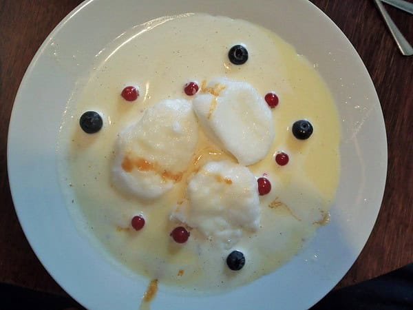 Das Dessert kommt aus dem Badischen und ist wirklich sehr lecker. Die Schneebälle sind aus gegartem Eischnee.