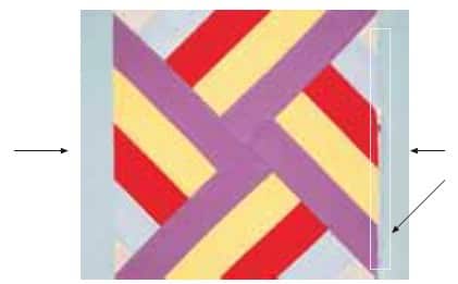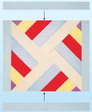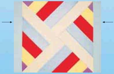Schneiden Sie aus dieser Streifenkombination 4 Quadrate.