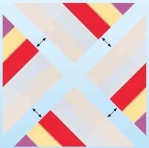 Wie Sie sehen, sind zwei ganz unterschiedliche Blöcke aus der gleichen Streifenkombination entstanden.