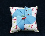Mit dem bekannten Windmühlen-Muster lassen sich nach dem gleichen Prinzip sehr schöne Nadelkissen und Kissen kreieren. Den Arbeitsablauffinden Sie in der nachfolgenden Anleitung „Schnitt für Schnitt“ erklärt. Diese Anleitung zeigt ausführlich, wie aus wenigen Stoffresten kleine Kunstwerke entstehen.