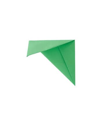 Gegenüberliegende Ecken zur ersten Falzlinie hin umknicken, sodass ein rechtwinkliges Dreieck entsteht.