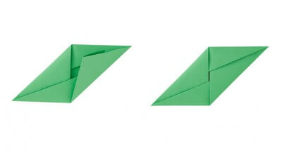 Nun die gefalteten Dreiecke noch einmal zur ersten Falzlinie hin umschlagen. Danach jede Seite zur Mitte hin falten.