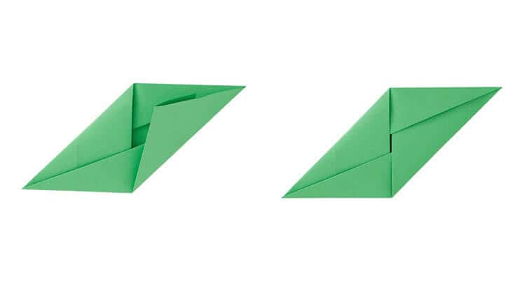 Die anderen beiden gegenüberliegenden Ecken so falten, dass ein Parallelogramm entsteht, und ...