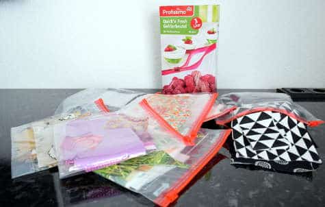 Die Stoffreste finden farblich sortiert in Zipp-it Beuteln ihre neue Aufbewahrung. Liegend auf dem Bild seht ihr die 1,5 Liter Beutel. Für die meisten Farben reicht das so auch aus. Jedoch die Präferenzfarben (schwarz, weiß und grau) könnten auch gut die 3 Liter Beutel vertragen. Oder besser gesagt, die Stoffreste müssen dringend mal wieder vernäht werden.