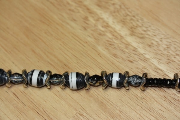 Papierperlen mit Nadelstreifeneffekt.