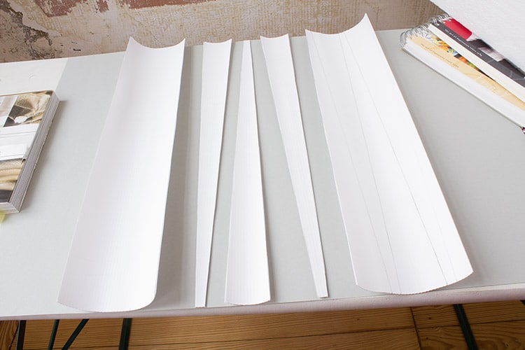 Zuerst faltet ihr die Wellpappe in der Mitte. Achtet darauf, dass die Wellen nach innen zeigen.