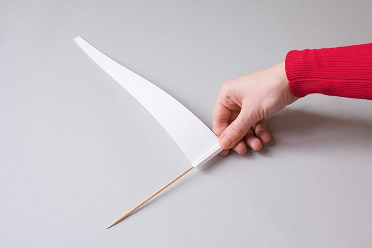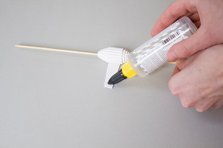 Rollt die Wellpappe straff auf den Spieß und setzt auf das Streifenende einen Klebepunkt.