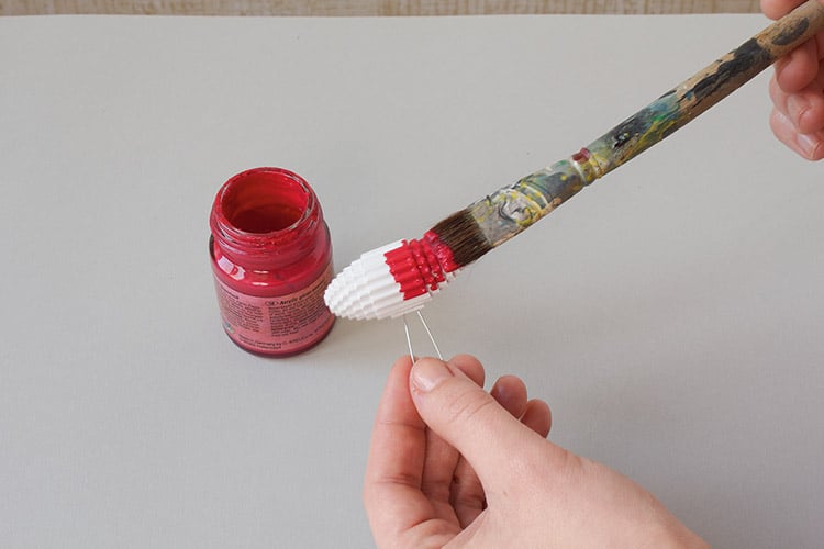 Wenn der Klebstoff ausgehärtet ist, 6 könnt ihr die Perlen lackieren, am besten geht das mit einem breiten Pinsel. Wichtig: Jede Pore gut mit Lack verschließen!