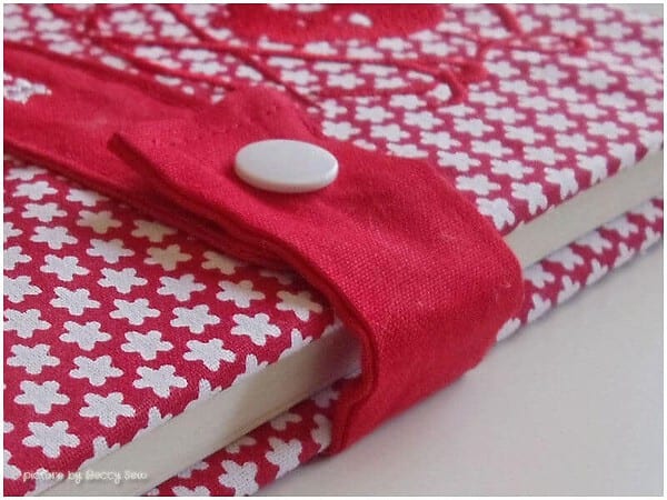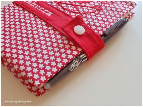 Diese Zeiten sind vorbei: Seit heute trage ich dieses wunderhübsche und höchstpersonalisierte Notizbuch mit mir herum. Genäht ist es nach der Buchhüllen-Anleitung von pattydoo (verlinkt in meinem Blogbeitrag), aber persönlich aufgepimpt.