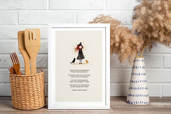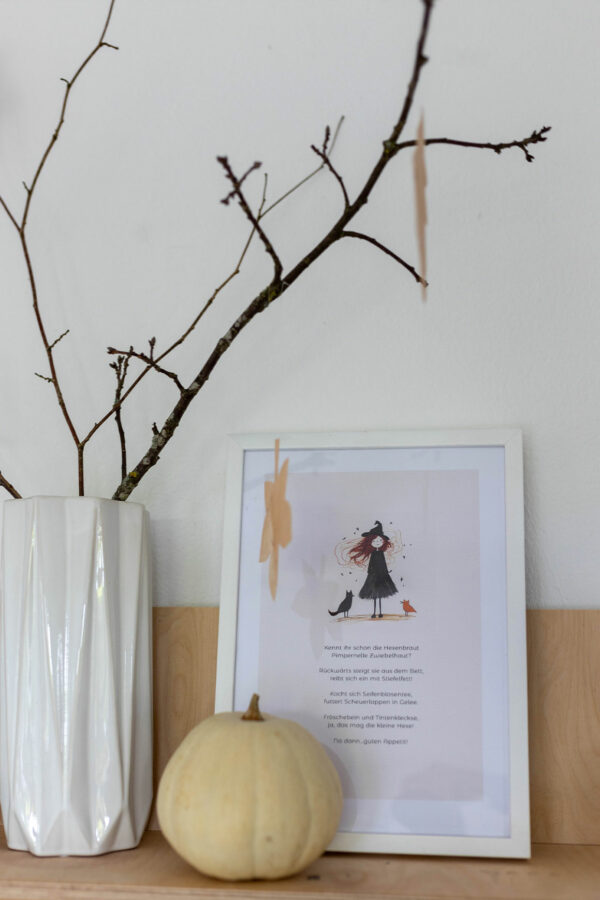 Jetzt wird’s lustig und herbstlich zugleich! Mit einer niedlichen Hexe und einem spaßigen Tischspruch, in einem frischen und zeitgemäßen Design, ist das Poster ein moderner Blickfang in eurer Küche oder eurem Esszimmer. Gleichzeitig verleiht es dem Raum eine warme und herzliche Atmosphäre, die den Herbst perfekt widerspiegelt. Der heimliche Star deiner Herbst-Deko. 😊
