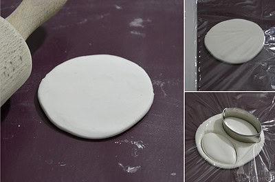 Bedeckt die Modelliermasse mit Frischhaltefolie und stecht nun die Formen aus. Die Ausstechform erst durchdrücken, dann ganz leicht hin und her bewegen.