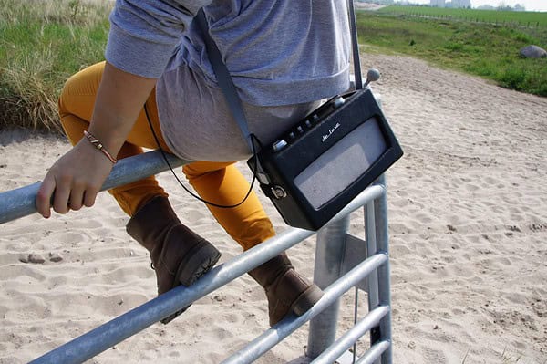 Zum Glück hab ich einen leidenschaftlichen Bombenbauer und Elektricktrickmenschen in meinem Menschenrepertoire. Dem konnte ich zwei Kabeldinger mitgeben und aufgrunddessen ist es nun möglich von außen die Kopfhörer und von innen den Mp3-Player anzuschließen. Es sieht doch gefühlt um Welten unbescheuerter aus, ein Radio mit sich herumzutragen, wenn man tatsächlich Musik damit hören kann. (Wobei der Stylefaktor meiner Meinung nach auch so schon sehr hoch wäre).