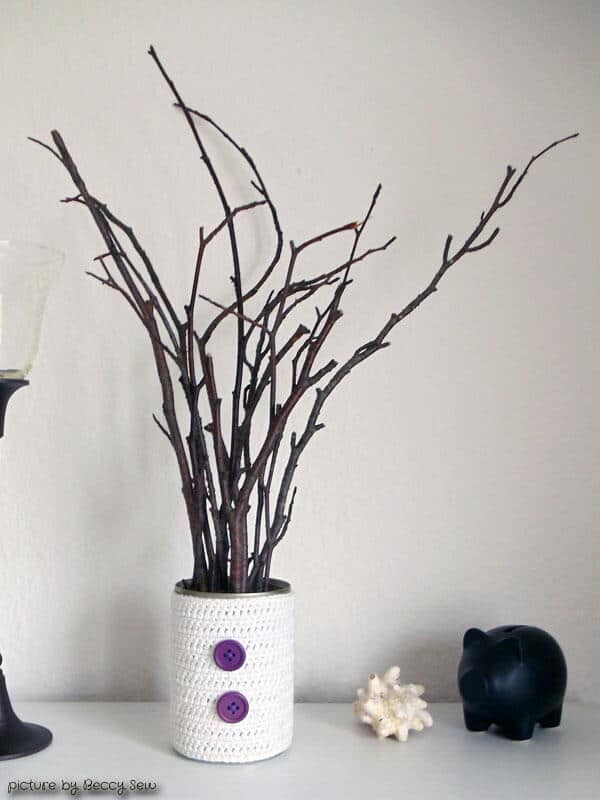 Recycling-Herbstdeko: Häkelkleidchen für die Dose & Waldfundstücke