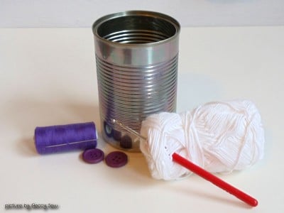 Deshalb seht ihr hier, wie man sich schöne Herbstdeko ins Haus holen kann – in Form eines winzigen Recycling-Projektes. Konservendosen-Müll vermeiden wäre natürlich besser, aber lässt sich leider nicht immer (einigermaßen einfach) umsetzen. Deshalb: Besser wiederverwerten, als wegwerfen! Also ran an die Häkelnadel…