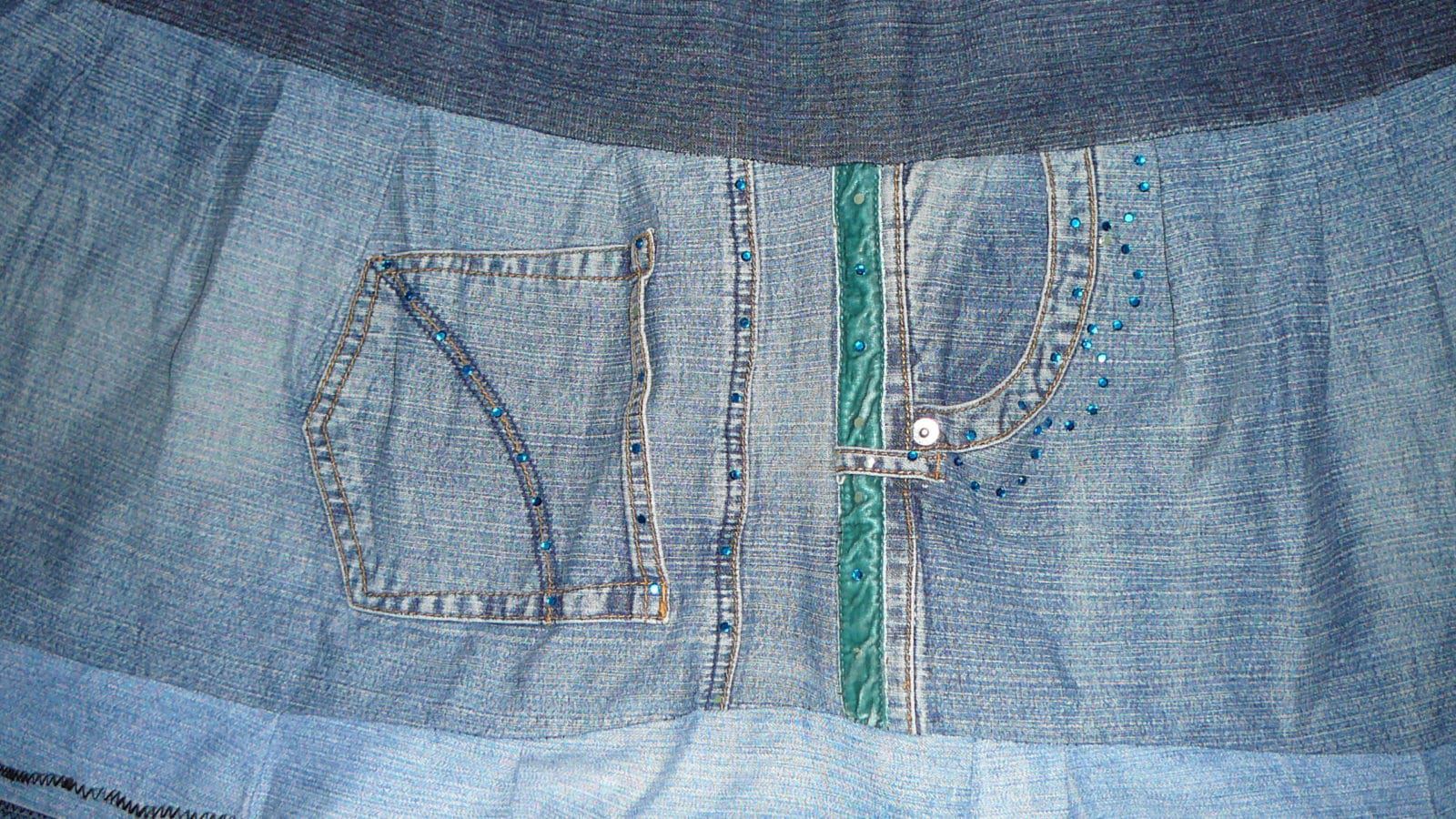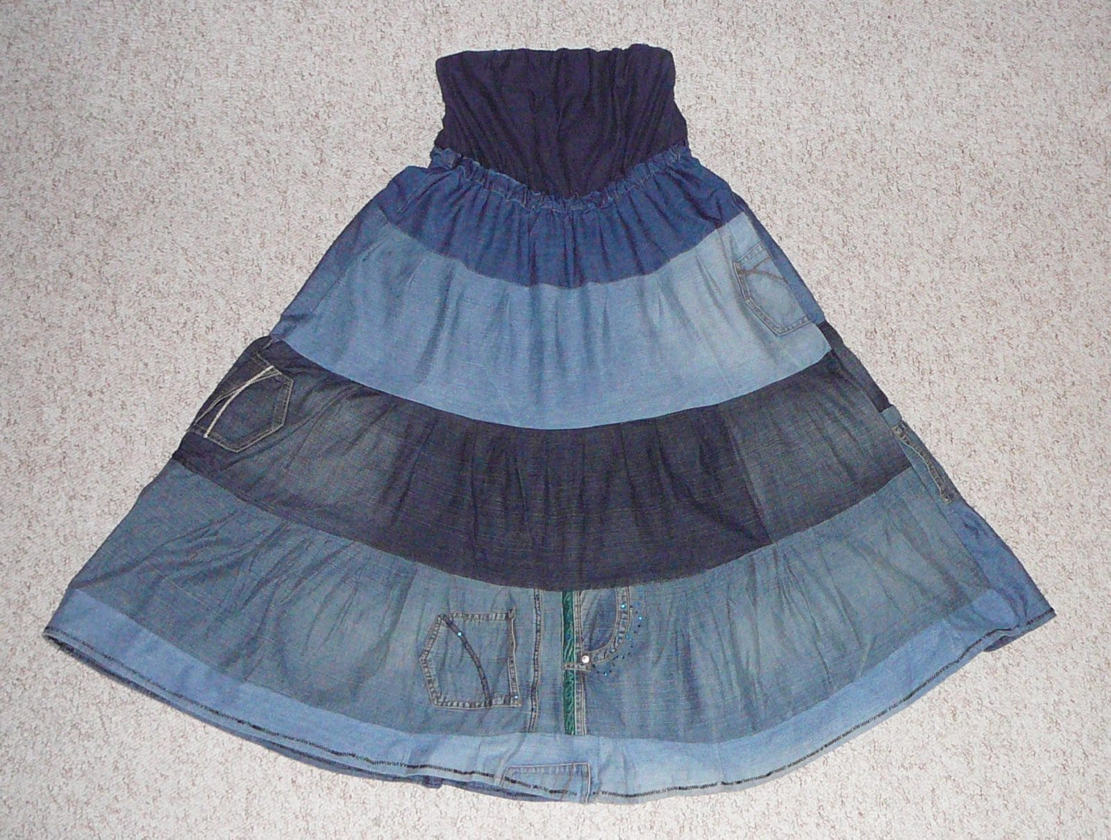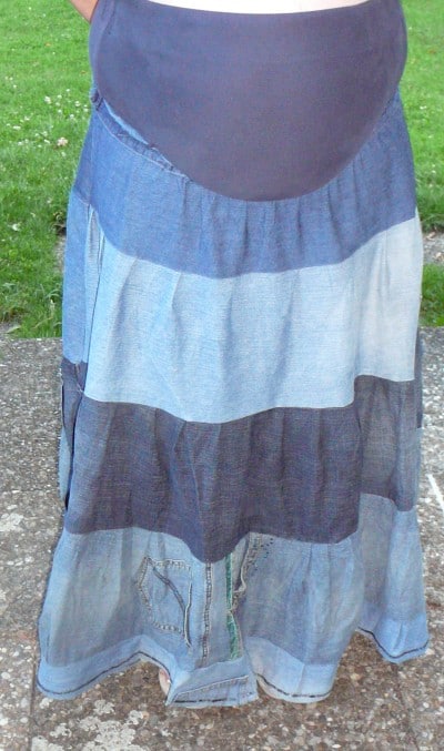 Dieser Jeansrock besteht aus 7 alten ausgedienten Jeanshosen