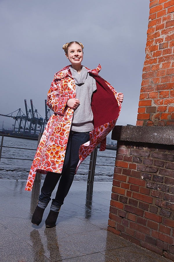 Gisa Kuhn, angehende Gewandmeisterin, entwarf exklusiv für HANDMADE Kultur den Regenmantel mit Warmhaltegarantie. Perfekt dafür: die Soul Blossom Stoffe von Amy Butler.