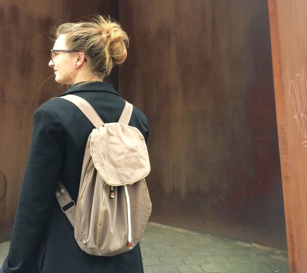 Mein Anfang 2012 genähter Retrorucksack musste leider im Rahmen meines Umzugaussortieranfalls über die Regenbrücke gehen. Das Material war schon länger durch, aber immer, wenn ich ihn entsorgen wollte, malte meine nostalgische Seite Protestbanner und meldete gewaltvolle Demonstrationen an. Ich handelte also den Deal aus, einen neuen, schöneren, besseren, erwachseneren Rucksack zu nähen und dafür den alten wegschmeißen zu dürfen. Meine nostalgische Seite stimmte zu, unter der Bedingung, dass an dem neuen Rucksack Glitzi zu finden sei und der Deal wurde per Handschlag besiegelt. Ich habe das Schnittmuster überarbeitet. Das Schrägband oben ist weg, das war ja auch mehr als unpraktisch, die Träger und die Klappe sind eingelassen, Die Träger sind verstellbar. Der Rucksack sieht insgesamt viel sauberer aus und hat nun weniger Angriffspunkte, an denen er kaputt gehen könnte. Und Glitzi ist auch dran. Optional für Freunde des Prunks.