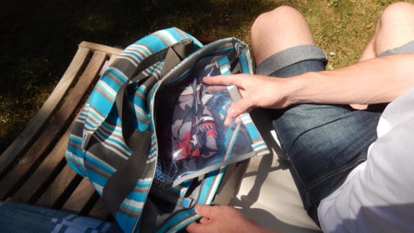 Die Strandtasche kannst Du mit einem Reißverschluss schließen, so dass nichts herausfallen kann.
