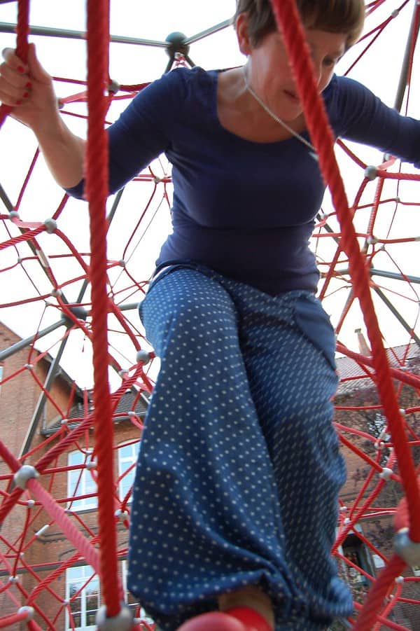 Was für eine schöne Fügung: Zum Geburtstag bekam ich neben vielen anderen schönen Dingen einen Dawanda Gutschein und die aktuelle HandmadeKultur. So konnte ich mir für das tolle Schnittmuster der Sarihose gleich den passenden Stoff aussuchen! Sie war ruckizucki genäht. Den Aufnäher gab es übrigens auch zum Geburtstag. Samt der Taschen verleiht er der Sarihose einen ganz individuellen Charme. Durch den leichten Jeansstoff fühle ich mich nun im Sommer in jeder Lebenslage perfekt angezogen.Für mich als Mutter fällt diese Hose in die Rubrik: Arbeitskleidung. Denn sie macht einfach jede Bewegung mit;-) Und dass mir meine „Arbeit“ Spaß macht, siehst du an den Fotos. Mehr davon findest du hier: