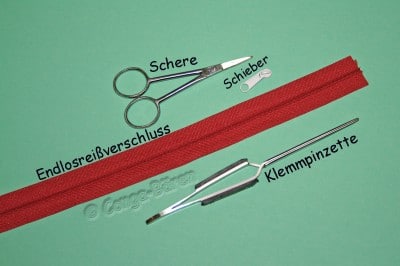 Hier zeige ich euch, wie man den Schieber (manche sagen Zipper) auf den Endlosreißverschluss bekommt.