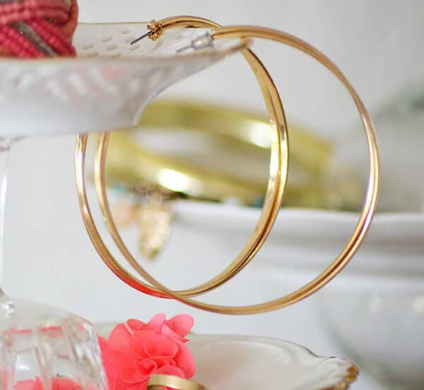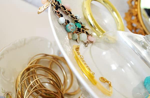 Man kann solche Etagèren für Gebäck und Cupcakes benutzen, aber auch für Schminke und Nagellack – ich platziere darauf meinen Schmuck: so habe ich ihn griffbereit und sortiert.