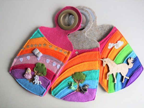 Du brauchst ein schnelles Geschenk? Eine Handy-Ladetasche aus Filz ist schnell genäht – und du kannst damit herrlich kleine Geschichten erzählen! Auf meinen Handylade-Stationen tummeln sich Einhörner, Drachen und Prinzessinnen!