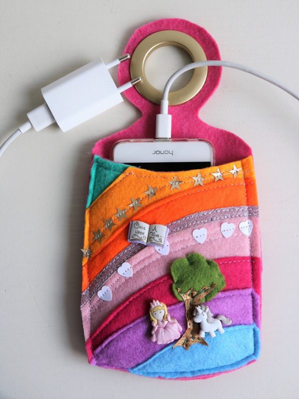 Meine ultrasüße Handy-Ladetasche nähen auch Anfänger in Nullkommanix! Die bunten Ladestationen erzählen Geschichten von Drachen, Prinzessinnen und Einhörnern. ;)
