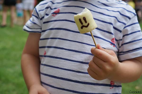 Am Samstag war in der Kita Sommerparty, die leider etwas verregnet war. Ich habe mich entschieden, kleinen Schokoküssen ein Gesicht zu geben, da ich auf Pinterest mal Schokokussindianer gesehen habe.