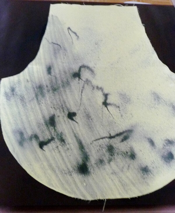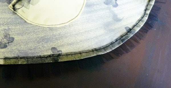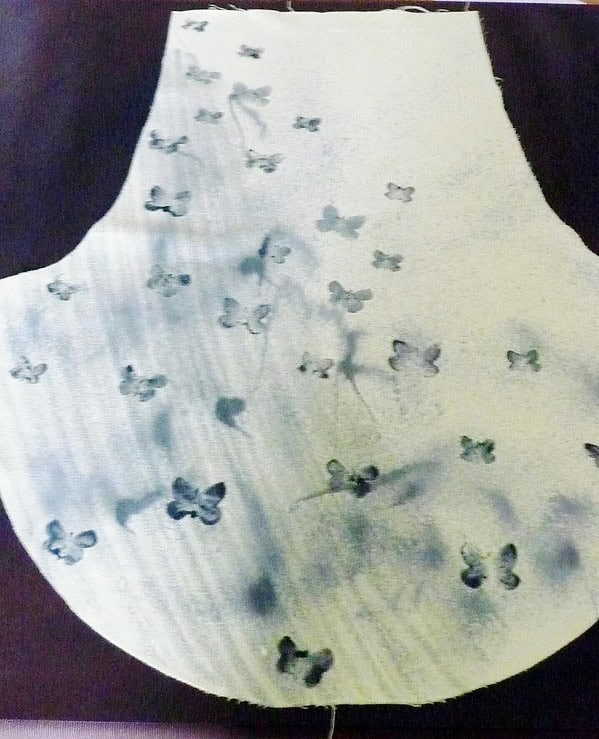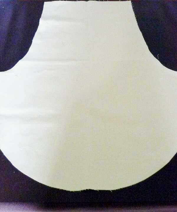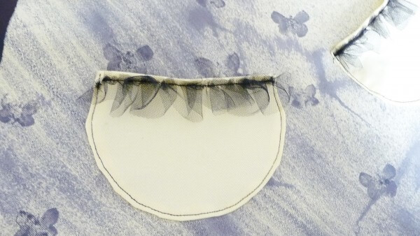 Ich habe für die Schürze ein Baumwollstoff in Pastellgelb, ein Tüllstoff in Schwarz und eine Textilfarbe in Schwarz verwendet.