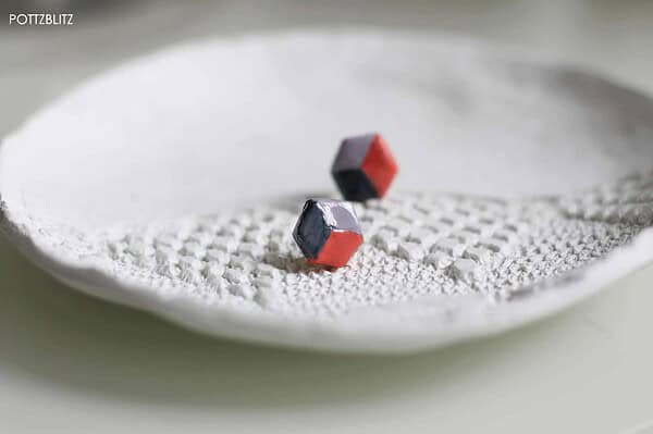 Zunächst haben wir ein zwei Euro großes Stück flach ausgerollt (rund 1-2mm). Mit einem scharfen Messer haben wir dann die gewünschte Form ausgeschnitten und mit der flachen Kante leichte Kerben in die Efaplastmasse gestrichen. Die Formen haben wir einen Tag lang trocknen lassen und am darauffolgenden Tag lackiert. Man kann es kaum glauben, aber diese schrägen Farben hatten wir auch mal auf den Nägeln. Jetzt nur noch die Ohrstecker aufkleben und schon waren unsere DIY-Ohrstecker fertig.