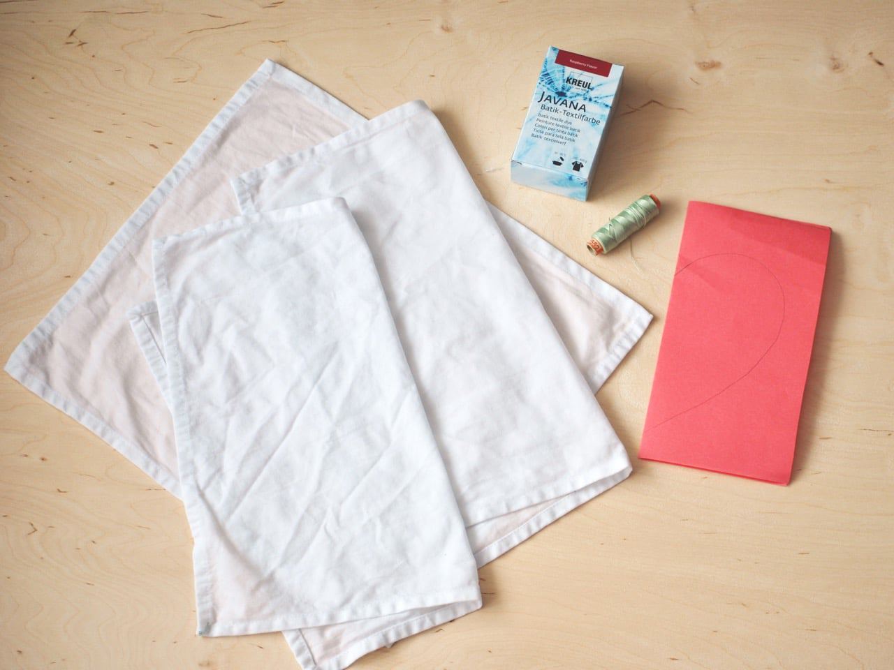 Die Stoffserviette in der Waschmaschine nochmal durchwaschen. Ich empfehle zusätzlich noch ein Fixiermittel zu verwenden - gibt es passend zu jeder Textilfarbe - dann bleibt die Färbung auch bei mehrmaligem Waschen intensiv.
