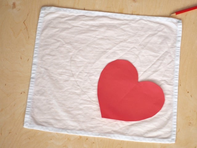 Male ein Herz in der gewünschten Größe auf das Papier, schneide es aus und übertrage das Motiv auf die Stoffserviette