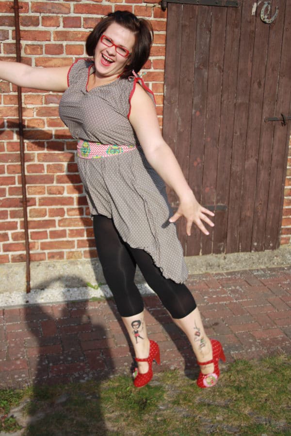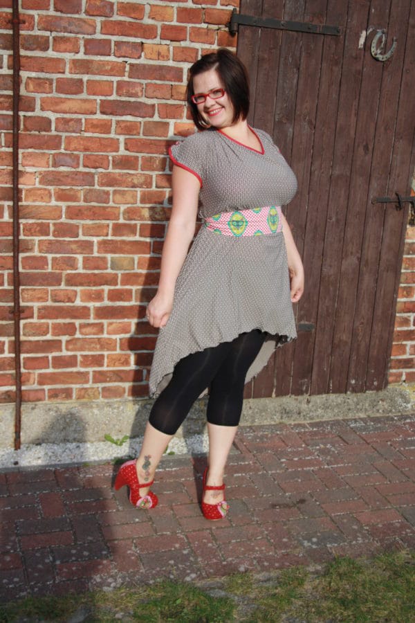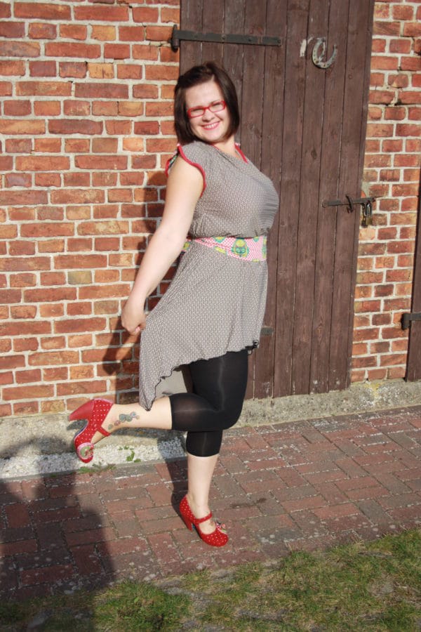 Meine Tunika zu Nähwettberwerb, einiges abgewandelt da sie ohne Veränderungen wie ein Sack an mir hing. Ich habe den Ausschnitt verändert und die Ärmel mit Gummiband vernäht so das es immer eine schöne Form macht. Der Rückenausschnitt fällt locker und macht einen neckische Rückansicht.Dazu habe ich hinten einen Knopf selbstbezogen wo sich der Stoff im Gürtel und in den Schleifen auf dem Arm wiederspiegelt.Als Saum habe ich mich für einen Rollsaum entschieden.Ich habe mich für locker fallenden Jersey entschieden und denke es war eine gute Wahl.