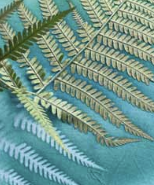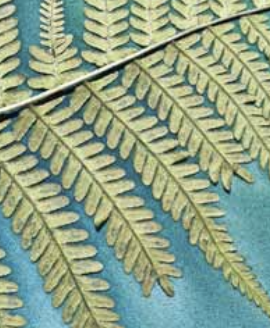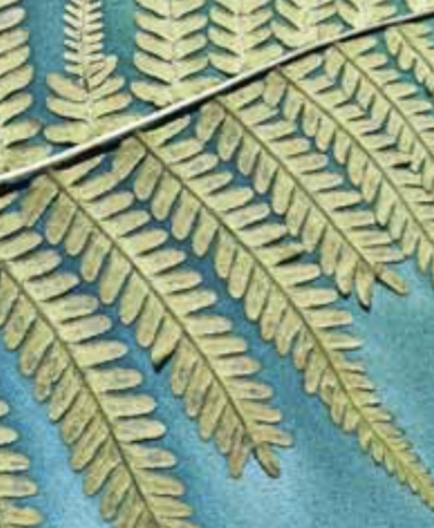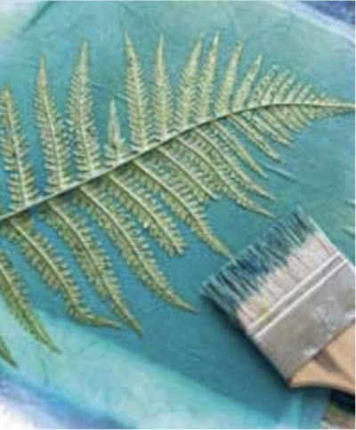 TIPP der Autorin: Sonnen- bzw. Wärmedruck basiert auf dem Prinzip der Pigmentverdrängung. Er funktioniert am besten mit Blättern und Pflanzenteilen, die möglichst dünn sind und kurz gepresst werden, damit sie schön flach aufliegen. Farn ist der Klassiker und fasziniert immer wieder. Alle Konturen der Pflanzenteile, die gut auf dem feuchten Material anliegen, bilden sich schön scharf ab.